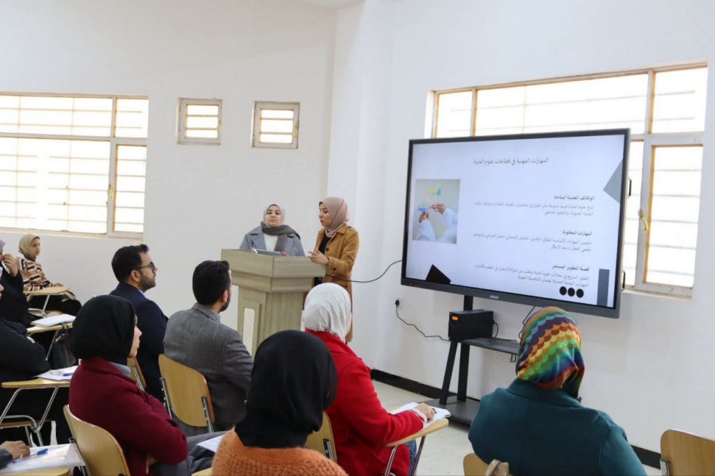 وتضمّنت الندوة محاضرتين علميتين قدّمتهما م.د. أفراح جواد عبد وم.م. سلوى أحمد حمزة، تناولتا خلالهما محاور متعددة شملت مفهوم التمكين المهني للمرأة، وأهمية الاستثمار في التعليم والتدريب المستمر، ودور التخصصات المرتبطة بعلوم الحياة في بناء القدرات وتعزيز فرص العمل، إلى جانب تسليط الضوء على أبرز التحديات التي تواجه المرأة في مسيرتها المهنية وسبل معالجتها.